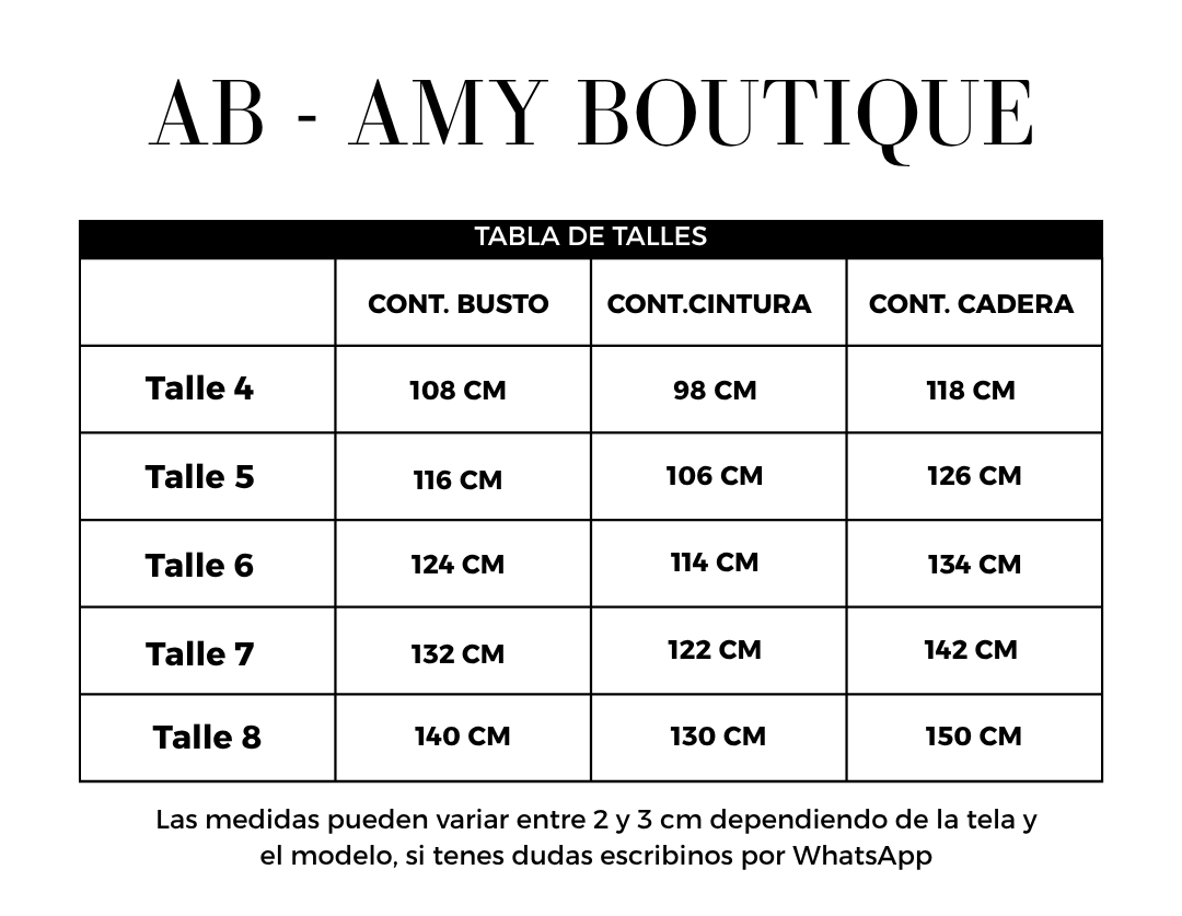 Tabla de Talles de Amy Boutique